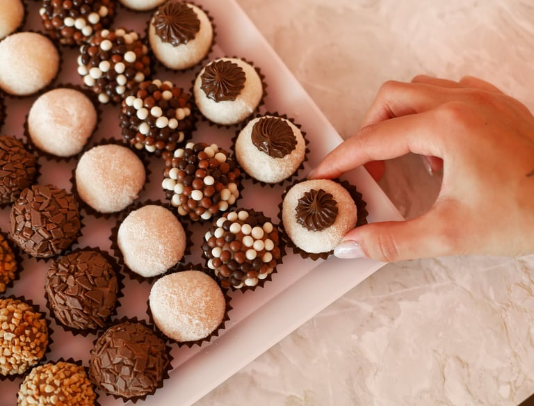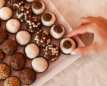 Brigadeiro tradicional, brigadeiro de morango, docinho de coco, beijinho